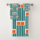 Este conjunto de toalhas tem uma design moderna do século médio feita de cinco linhas lacrimogêneas e dois retângulos laranja repetidos na design.