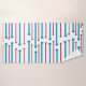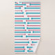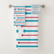 Este conjunto de toalhas tem uma design moderna do século médio de linhas vermelhas e azuis com círculos nas extremidades de um campo de branco.