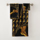Opulent Swirl Liquid Gold Black Monochrome Christian Bath Towel Set.
