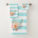 Adicione um toque de elegância feminina à sua decoração com este conjunto de toalhas de banho listradas em aqua turquesa chic decoradas com um ranunculus floral suave em pêssego e rosa. Personalize este lindo design feminino adicionando seu nome.