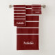 Nome Moderno do Monograma Vermelho Escuro Listras Brancas Texto Personalizadas Conjunto de Toalhas.