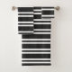 Um clássico moderno, esta listra preto e branco é contemporâneo e fácil de misturar com outros cores e padrões. Este teste padrão listrado dobro dramático olha grande em uma casa, em um apartamento ou em um banheiro do dormitório. Alternar listras grossas e finas adiciona um toque sofisticado. Conheça grupos em cores diferentes para que as pessoas diferentes de quem toalha é de quem! Grande presente do housewarming para que um apartamento novo ilumine acima das paredes brancas inevitáveis.