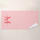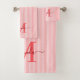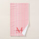 Adicione um toque de elegância ao seu banheiro com este conjunto de toalhas de banho personalizadas com monograma. Com um fundo listrado macio em vermelho e branco, cada toalha é personalizada com o seu monograma inicial e nome em uma fonte de letra cursiva sofisticada para um visual atemporal e feminino.