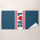Design de amor com forma cardíaca em estilo náutico sobre fundo listrado a azul, vermelho e branco