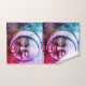 Esta é uma representação artística do sol com um rosto ao lado da lua com pinks quentes e blues verdes em um sombreado de abstrato. A face parece pacífica e penosa. Lua branca e decoração solar para transformar magicamente a decoração do banheiro.