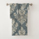 Conjunto De Toalhas Luxurioso Silver Damask em Fundo Azul