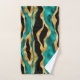 Add a touch of luxury to your bathroom with this striking gold and teal tiger stripe towel set. The bold combination of shimmering gold, rich teal, and black creates an elegant, modern look that is perfect for contemporary spaces. The abstract design provides a chic and artistic feel, elevating your bathroom decor with its dynamic energy. Whether for a sophisticated update or a special gift, this design brings both style and comfort to any home.