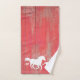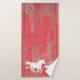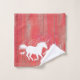 Uma toalha de banho de fazenda rústica, constituída de cavalos selvagens galopando por um vale de montanha sobre um fundo de conselho de celeiro vermelho. A decoração ideal para o amante dos cavalos!