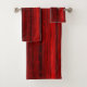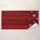 Toalhas bonitas para o seu banho de Natal. Fundo de madeira rústica vermelha com lindos flocos de neve.
