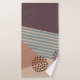 Este conjunto de toalhas tem um desenho abstrato moderno do século médio de uma linha azul, um triângulo bronzeado, e um círculo castanho feito de pontos em um campo de berinjela escura e creme. Se você quiser o mesmo design com cores diferentes, me mande uma mensagem.