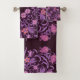 Este conjunto de toalhas de banho é uma bela e colorida adição a qualquer banheiro. As toalhas são cor púrpura magenta e roxas e apresentam um design de mandala artístico. O conjunto inclui uma toalha de banho, uma toalha de mão e um pano de lavagem.