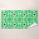 Toalha colocada em um padrão mandala de doze pontos em azul-turquesa, azul e tons de verde limão acentuados com azul-real