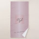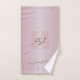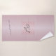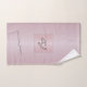 Toalha de banho monogramada, de aparência exclusiva, de luxo, apresentando um quadrado rosa de ouro falso sobre um fundo metálico branco cor-de-rosa na moda. + Personalize-o com seu nome de assinatura de script preto ou nome de família e iniciais de nome de monograma.