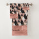 Conjunto De Toalhas Marble em preto | Monograma branco e rosa