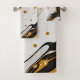 O "Elegante Marble Dourado Glam Feminine Bath Towel Set" é uma obra-prima visual que combina perfeitamente a estética moderna com a sofisticação clássica. Este conjunto luxuoso de toalhas foi projetado para elevar o ambiente de qualquer banheiro com sua impressionante combinação de cores, padrões e texturas. O tema dominante do conjunto de toalhas é um padrão elegante que intricadamente tece elementos modernos e clássicos. O uso de padrões de mármore, tanto em preto como em branco, cria um eterno e um toque sofisticado, enquanto a incorporação de sotaques de ouro metálicos adiciona um toque de glamour. Esse toque de ouro, combinado a tons brancos e negros brilhantes, resulta numa estética chic e na moda que atrai quem tem gosto por luxo moderno. As toalhas apresentam uma mistura de designs de mármore e inspirados na arte, criando um apelo visual único e atraente. A inclusão de detalhes de brilho e folha de ouro adiciona um toque de vidro, fazer essas toalhas como uma peça de declaração em qualquer banheiro. A combinação artística de pedra e elementos metálicos melhora a sofisticação geral, fornecendo um equilíbrio perfeito entre elegância clássica e estilo contemporâneo. A paleta de cores gira em torno de uma combinação impressionante de preto, branco e ouro. Os tons profundos e ricos de preto e a nitidez do branco fornecem uma fundação eterno, enquanto os sotaques de ouro metálico introduzem um elemento de opulência. A interação dessas cores cria um senso de modernidade e sabor refinado, fazer esta toalha tenha feito uma escolha perfeita para aqueles que apreciam uma decoração luxuosa e na moda do banheiro. Em suma, o "Elegante Marble Dourado Luxury Glam Feminine Bath Toalha Set" é um símbolo de sabor e opulência refinados. Sua sofisticada mistura de padrões de mármore, sotaques de ouro metálicos, e detalhes artísticos faz dela uma escolha de destaque para indivíduos que buscam uma adição moderna, glamourosa e completamente na moda ao seu banheiro. Essa toalha combina facilmente elementos clássicos e contemporâneos, resultando em um acessório luxuoso e visualmente atordoante que transforma o banheiro em um santuário de elegância.
