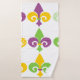 Este conjunto de toalhas tem um design de Mardi Gras de fleur de lis revestido através do design com diferentes designs.