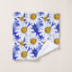 Toalha definida em um padrão de aquarela de margaridas brancas com centros ouro amarelos, sobre um fundo em tons de azul denim