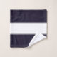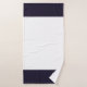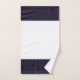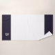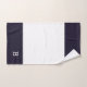 Marinho de toalha de banho azul. Branco com um monograma de texto de bloco branco em uma borda marinho azul e cinza.