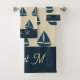 Conjunto De Toalhas marinho azul veleiro e Monograma Beige Casa Costei