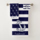 Marinho de Âncora Náutica Marinha Bandas brancas brancas Bath Toel Set Personalizar adicionando um nome de família e um monograma