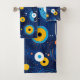Toalhas de banho azul marinho com padrão de mau da boêmia. Expulse todas as vibrações ruins do seu banheiro com estes olhos de mau!