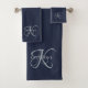 Conjunto De Toalhas Marinho de Script Monograma Elegante Moderno Azul