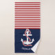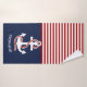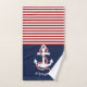 A toalha decorativa do banho Na moda apresenta uma faixa azul e branca marinho náutica com uma ilustração do vetor da âncora branca sobre um fundo azul, podendo facilmente alterar a cor. Itens correspondentes disponíveis em nossa loja.