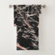 Conjunto de toalhas de três banhos de mármore preto e rosa.