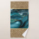 Conjunto De Toalhas Mármore Verde Esmeralda Brilho Dourado