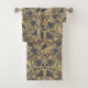 Este conjunto de toalhas de banho apresenta corvos, libélulas e besouros rodeados por flores e folhas em tons de massa e cinza sobre fundo brando.