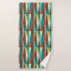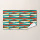 Toalha de banheiro moderna do Médio século. Padrão de diamante. Cores em vermelho, turquesa, amarelo e castanho.