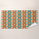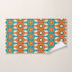 Toalha de banheiro moderna do Médio século. Padrão de círculo. Cores vermelho, marrom, turquesa e amarelo.
