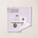 Esta design de toalha de crianças rosa e fofinha, fofa, apresenta ilustrações hospitalares e um padrão de ambulância, com uma ambulância, sirene, coração e estetoscópio. Também há espaço para você adicionar seu nome de meninas em uma fonte simples. O dom perfeito para qualquer médico ser!