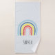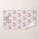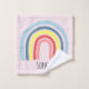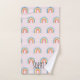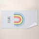 Este conjunto de toalhas de meninas em moda mostra um desenho adorável do arco-íris, com um bonito fundo rosa. Este design moderno também oferece um lugar para você adicionar um nome. O perfeito arco-íris, design moderno colorido para crianças ou adultos divertidos!