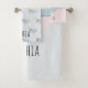 Este conjunto de toalhas de meninas da moda apresenta um desenho animado, desenhado à mão, de arco-íris, com um bonito fundo rosa. Este design moderno também oferece um lugar para você adicionar um nome. O animal perfeito temido, design, excelente para crianças ou adultos divertidos!