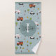 Esta design de toalha azul-bonita e moderna mostra ilustrações de transporte de emergência e um padrão, com um caminhão de bombeiros, um carro de polícia e uma ambulância. Também há espaço para você adicionar o nome e monograma de seus garotos em uma fonte simples. O presente perfeito para qualquer amante de transporte!