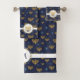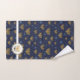Este maravilhoso design de Chanucá apresenta um ouro menorah e Star do padrão David sobre um fundo azul marinho. A toalha grande do banho exibe um monograma com aquarela. A cor de fundo pode ser alterada para qualquer cor escolhendo a ferramenta personalizar. #Hanukkah #Decor #HolidayDecor