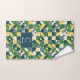 Elevate your bathroom with this stylish towel set featuring a modern Bauhaus-inspired design. Each towel combines abstract geometric motifs and vibrant color accents for a sophisticated touch. Personalized with initials and names, this set blends art and function, adding a unique touch to any space. The contemporary design complements any room aesthetic, making it a perfect gift for yourself or loved ones.