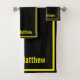 modern elegant black yellow monogram script name bath towel set, classic home decor .