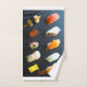 Add a touch of modern Japanese elegance to your kitchen or bathroom with this sleek sushi towel set. Featuring a beautifully arranged lineup of nigiri and gunkan sushi on a dark slate plate, this design showcases vibrant textures and flavors—from glistening salmon and ikura to scallops and tamago. Ideal for sushi lovers and culinary artists, these towels bring a minimalist yet appetizing charm to your daily routine.