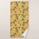 Padrão divertido moderno de meados do século para o seu banheiro estilo retrô. Fundo amarelo bonito com estrelas e espirais pretas, rosas e turquesa.