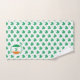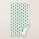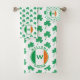 Conjunto moderno de SHAMROCK Bath Towel, desenhado com um padrão completo de shamrock. A bandeira irlandesa é colocada dentro de um círculo no canto de cada toalha. Há um texto curvo PERSONALIZÁVEL na parte superior e inferior do círculo, além de um MONOGRAM que também é personalizável. Este texto pode ser substituído por uma mensagem de boas-vindas e/ou personalizado com o seu nome ou nome do seu estabelecimento. Ideal para seus convidados ou clientes no Dia de São Patrício.