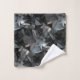 Painéis 3D sobrepostos criam uma vibração interdimensional, em preto e branco.