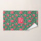 Conjunto De Toalhas Monogram hot red magenta green preppy Christmas