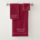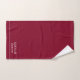 Nome próprio e sobrenome de guião personalizado e elegante monograma, toalha de banheiro fixa borda branca em burgundy. Atualize a decoração do banheiro com um estilo tipográfico minimalista.