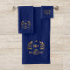 Conjunto De Toalhas Monograma Com Nome Elegante Azul Dourado