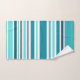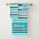 Bonito linhas claras e escuras de turquesa em uma bela toalha de banho listrada de chá, adaptada com seu sobrenome. Decor perfeito para uma casa de praia para lembrá-los das bonito sombras do oceano ou da praia.