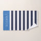Este conjunto personalizado de toalhas de banho feitas sob encomenda tem um padrão de stripe horizontal pré-definido em marinho, azul e branco. Personalize-o com seu nome monograma e texto inicial ou outro personalizado. Use as ferramentas de design para escolher qualquer cor de fundo, editar as fontes de texto e as cores ou carregar suas próprias fotos para criar um conjunto personalizado exclusivo de toalhas de banho que corresponda a qualquer decoração do banheiro. O conjunto inclui uma toalha de banho coordenadora, toalha de mão e pano de lavagem ou, se necessário, toalhas individuais.