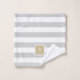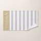Este conjunto personalizado de toalhas de banho sob encomenda tem um padrão de tiras horizontal pré-definido em cinzas leves, ouro e branco. Personalize-o com seu nome monograma e texto inicial ou outro personalizado. Use as ferramentas de design para escolher qualquer cor de fundo, editar as fontes de texto e as cores ou carregar suas próprias fotos para criar um conjunto personalizado exclusivo de toalhas de banho que corresponda a qualquer decoração do banheiro. O conjunto inclui uma toalha de banho coordenadora, toalha de mão e pano de lavagem ou, se necessário, toalhas individuais.