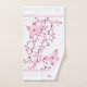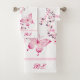 Bonito borboleta rosa-quente e cereja rosa floresce em um fundo branco. Personalize este conjunto de toalhas giras com suas iniciais.